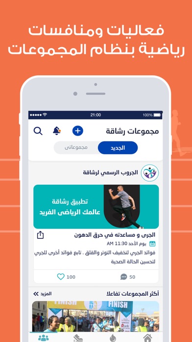 نظام المجموعات: حيث المتعة والإثارة لممارسة الرياضة مع اصدقائك واحبابك ومشاركتهم بأهم إنجازاتك ونشرها عبر وسائل التواصل