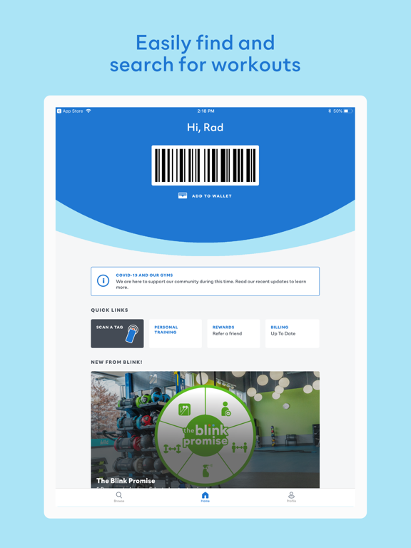 The Blink App challenges the one-size-fits-all gym philosophy. Exercise, eat, and exhale better with content from dozens of our partners, including Aaptive, Daily Burn, Food52, and more.