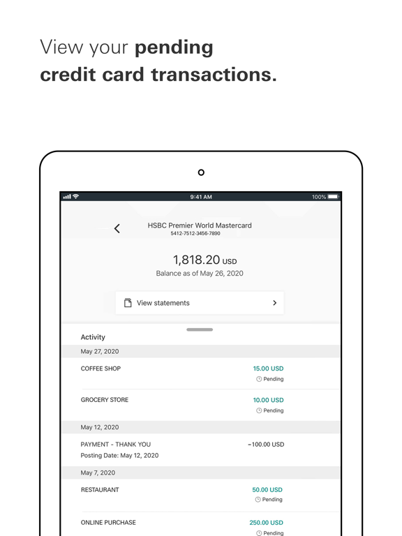 * Important note: This app is provided by HSBC Bank USA, N.A. for use by existing customers of HSBC Bank USA, N.A. only. Please do not download this app if you are not an existing customer of HSBC Bank USA, N.A. HSBC Bank USA, N.A. is regulated in the U.S. by federal and applicable state laws and regulations.