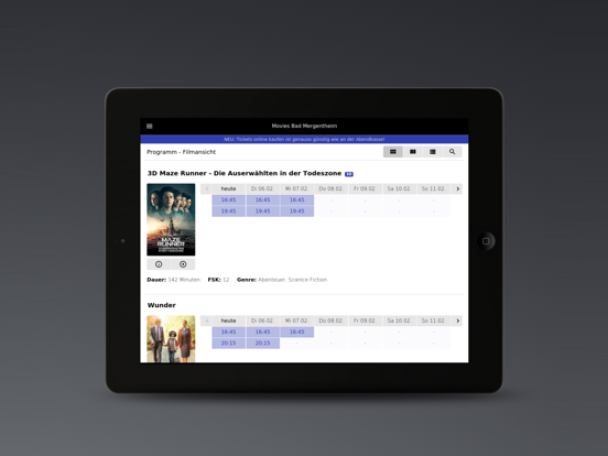 Kinotickets für die Movies Kinos - Bad Mergentheim & Hofheim online kaufen! Hier kaufst Du in unter einer Minute Kinotickets für Deinen Lieblingsfilm. Schnell, sicher, einfach und ohne Anstehen an der Kinokasse. Einfach aus dem aktuellen Kinoprogramm Deinen Film buchen und Du erhältst die Tickets einfach & bequem als E-Ticket auf Dein Smartphone und an Deine E-Mail-Adresse. So einfach ist Kino heute!