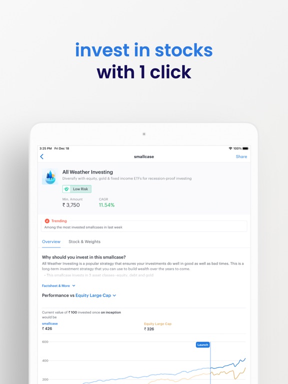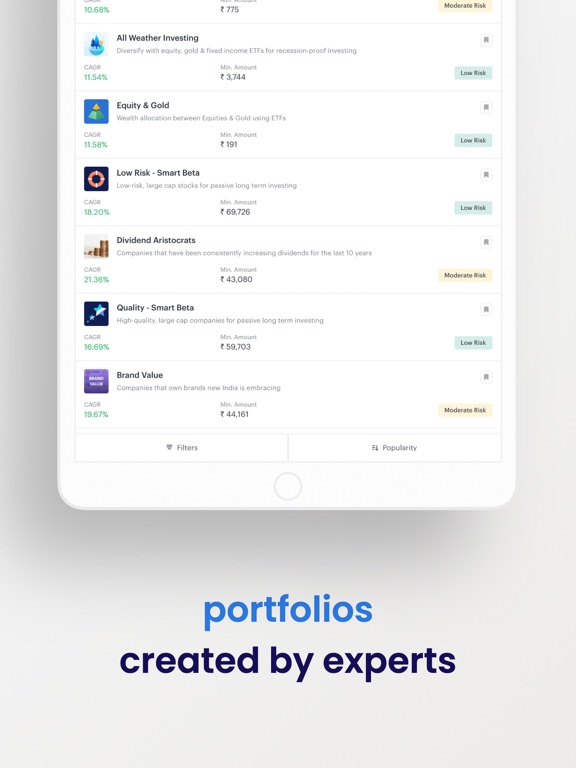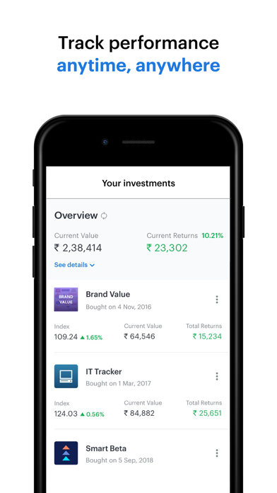 Choose from several intelligently-weighted portfolios of stocks/shares & ETFs (smallcases) that reflect trending market themes, ideas & strategies.
