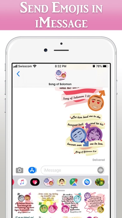 * 45 Emoji scriptures (10 are free) using the New International Bible version and a variety of verses from chapters 1-8 in the Song of Solomon