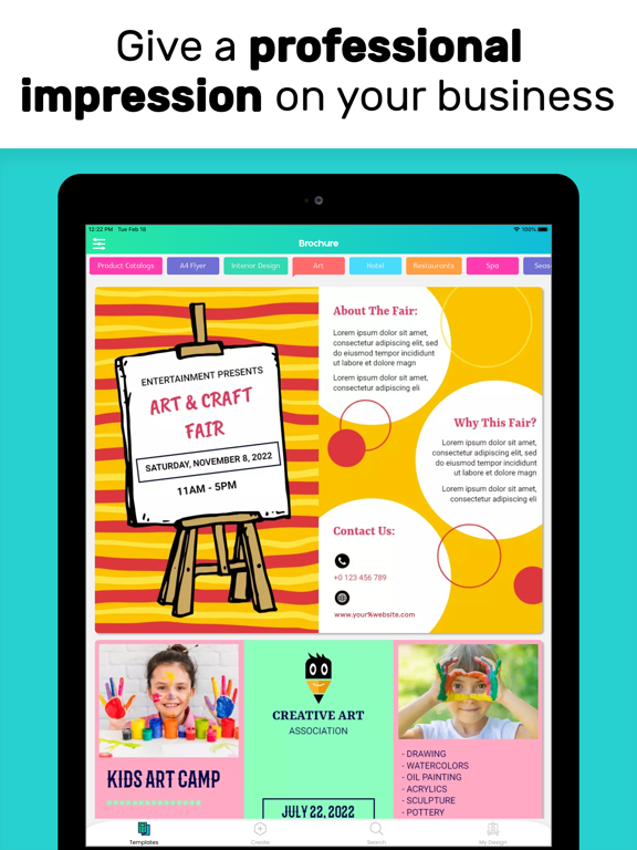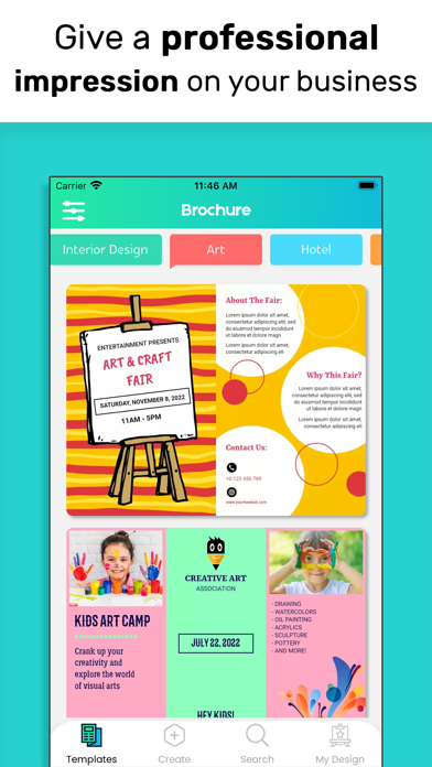 We've designed a good collection of advertising brochure templates and it is editable through this brochure maker and pamphlet creator app.