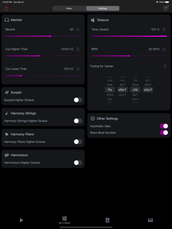 * PERFORM your best - Get a musical dialog going and creative juices flowing with intelligent, artistic melody, harmony and rhythm that improvise in real time. (Tabla, Swarmandal, Automatic harmony on Strings, Harmonium and Piano, Tanpura, Surpeti, Manjijra, Ghungroo, Shaker, with more instruments coming soon)