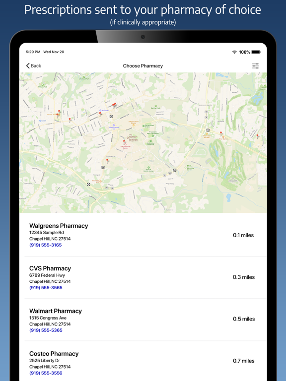 You can schedule an appointment at a time and day that's convenient for you or have an on-demand visit in around 15 minutes.