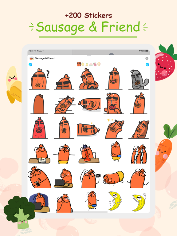Make your conversation even better with Sausage and Friend Animated Stickers: - Include animated stickers - 200 food stickers: sausage stickers,banana sticker, egg sticker, fruit sticker,... - Free to download - Smooth animation - Easy to use - Purchase to unlock once,use forever Download now!