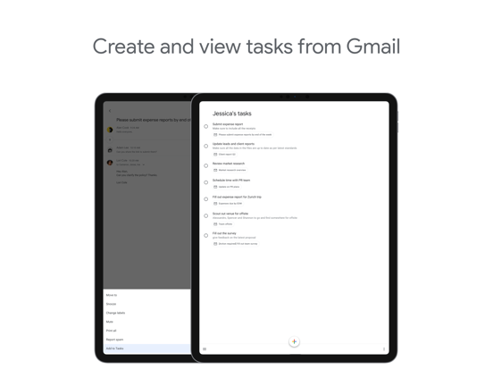 • Manage tasks created in Gmail or Calendar on the web from your mobile device