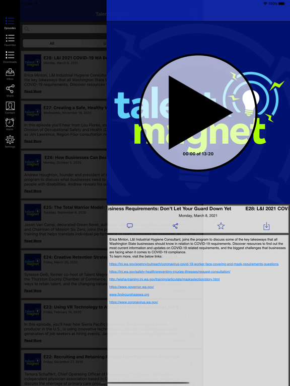 With this app you are always connected to the latest episodes and the show. Quickly star episodes and save them to a list so you can easily enjoy them over and over! This app has a Car mode too! Rotate your phone to display larger playback controls. It is the best and most convenient way to access Talent Magnet.