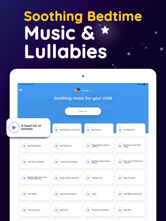 Storybook comes with over 45 (and counting) beautiful and simple massage series and bedtime stories for children 0-12 years old. Play lullabies and listen to bedtime stories together as you massage your child into a restful state of relaxation.