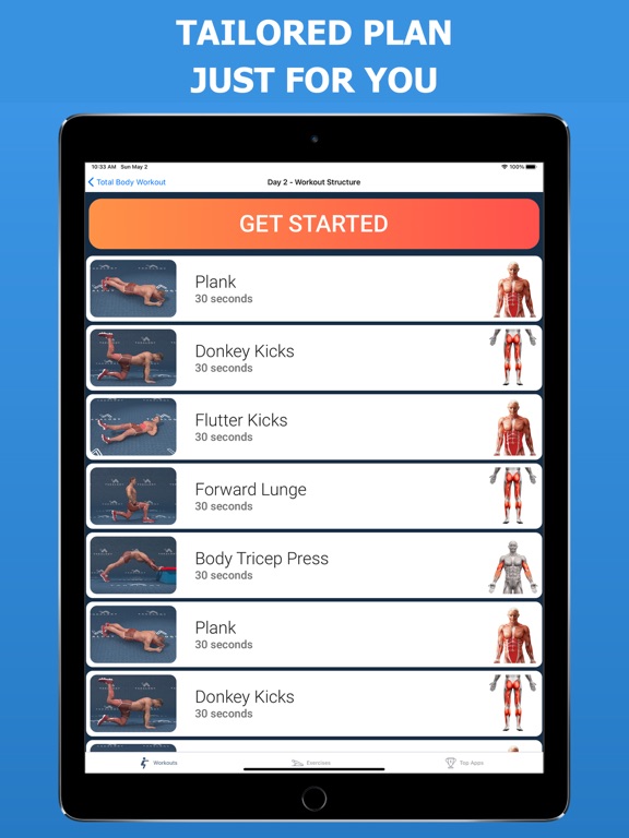 Home Workouts app provides scientific workout plan for all muscle groups at home. None of them need equipment, so there's no need to go to the gym. Even though it just takes a few minutes a day, it can effectively tone your muscles and help you get six pack abs at home.