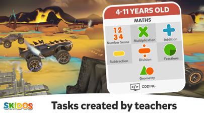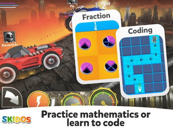SKIDOS games including Race Cars help kids master their mathematics skills and develop their interest in coding from a young age. You may subscribe to SKIDOS from within this app or you can log in to an existing account to get started. SKIDOS subscriptions are auto-renewable with monthly, quarterly, bi-annual, & annual plans for 6 users. So, six kids of different age (2-11 year olds) can learn and progress in their own individual learning style, adapted to what grade they are in (1st,2nd,3rd,4th,5th grade).