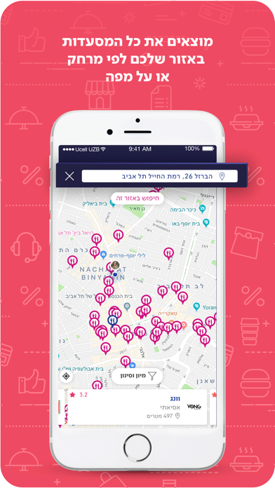 באמצעות האפליקציה תוכלו ליהנות מארוחה במשלוח, איסוף ממסעדה או לאתר מסעדות בישיבה.