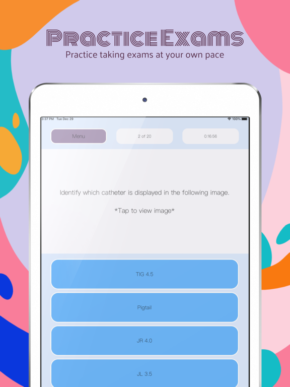 • Timer: Take a practice exam with the timer to simulate a real life test experience, or turn it off and take an exam at your own pace.