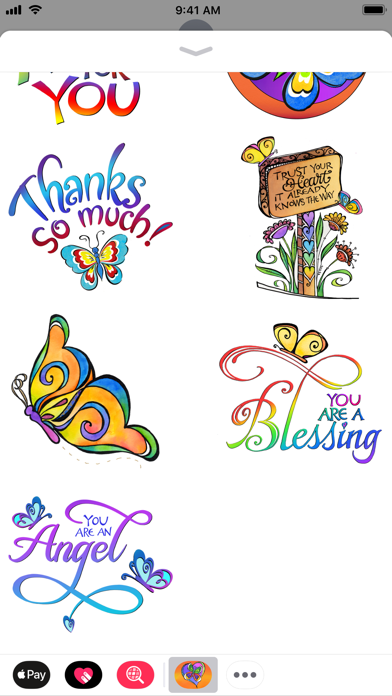 Turn your texts into a virtual hug and help them take flight with the Butterfly Inspirations collection of 25 heartfelt Care-Moji stickers. Designed and hand-lettered by world-renowned calligrapher Joanne Fink of Zenspirations®, these colorful sentiments and illustrations are a great way to brighten someone’s day.