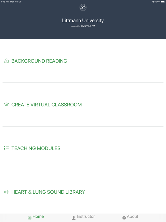 Littmann University - powered by eMurmur - is the app for auscultation education. Now educators can have access to heart and lung sounds, learning modules and more - anywhere, anytime. The app gives users access to real patient heart and lung sounds to help educate and test the recognition of benign and pathological sounds.