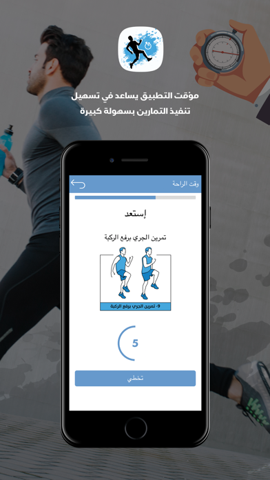 مؤقت التطبيق يعتبر مدرب خاص لك بحيث يحسب الوقت اللازم لكل تمرين