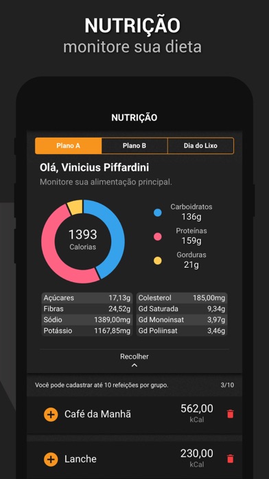 Agora além dos treinos insanos no app, você pode monitorar toda a sua dieta com o nosso novo sistema nutricional.