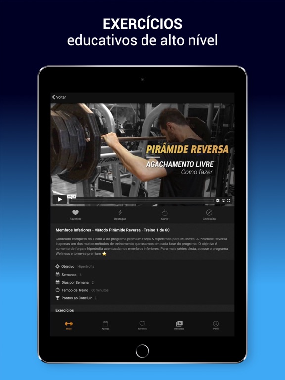Todos os programas contém vídeos explicativos, vídeos dos exercícios, descrições detalhadas das séries, número de repetições, intervalos e ainda você pode fazer as suas anotações dentro de cada exercício: carga usada, observações importantes, etc.