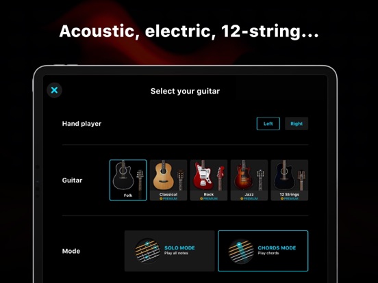 Playing the guitar has never been that easy! Learn thousands songs & chords, and create awesome music directly on your device. Play just like you would with a real guitar: chords of all difficulties, arpeggios, guitar bending, guitar picking...enjoy awesome feedback and ultra realistic sound! Feel like jamming? Try the free play mode interface and create your original music tracks. +2000 chords available to get crazy!