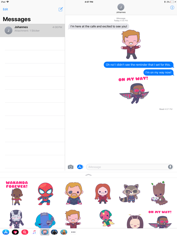 Make your iMessages more action-packed than ever before with this pack of 21 super stickers. Animated stickers including Captain America, Iron Man, Black Widow and more are ready to make your iMessages infinitely awesome!
