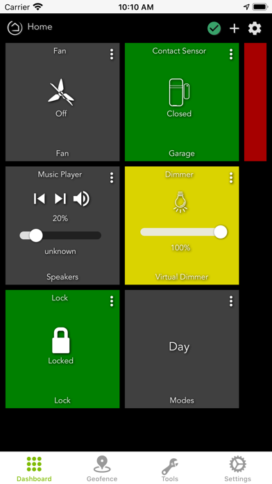 - Access Dashboards to monitor and control devices, arm or disarm Hubitat Safety Monitor, change Modes and more.