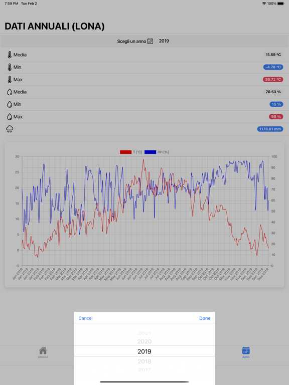 L'applicazione permette la visualizzazione dei dati climatici a Lana (TN- Italia) in tempo reale e le medie dei dati archiviate scegliendo il giorno che si desidera consultare. Si possono consultare anche i dati (non validati) delle stazioni meteo di Meteotrentino scegliendo quelle che si desiderano seguire. Per le stazioni di Meteotrentino è possibile visualizzare i dati dell'ultima misura ed i grafici a partire dalla mezzanotte del giorno precedente.
