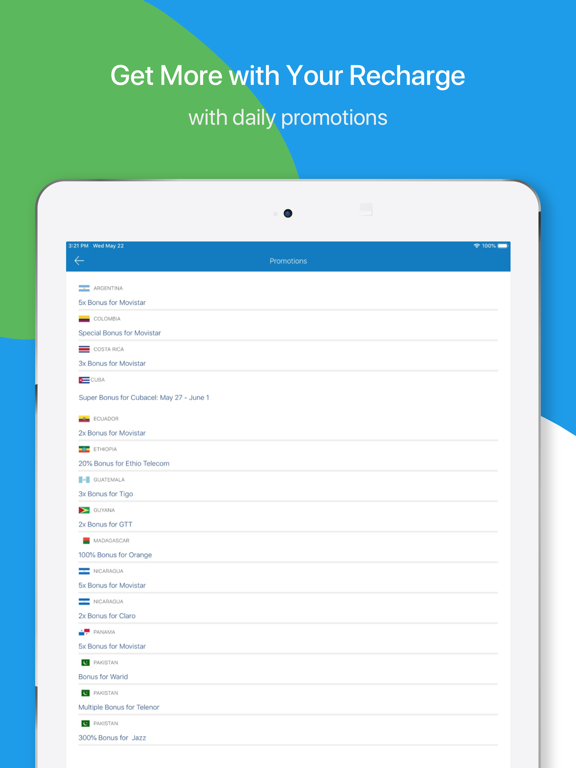 Yes, we do! We have regular top up promotions for operators like: Airtel, AT&T, BlueSky, Claro, Cubacel, Digicel, Etisalat, Kolbi, Lime/Flow, Movistar, MPT, MTN, Ncell, Orange, ooredoo, Telcel, Tigo, T-Mobile, Vodafone and many more.