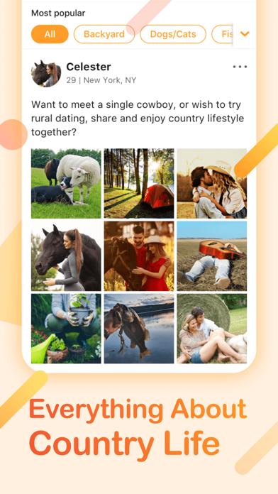 Meet and chat with real country /Rural folks! Date with single cowboys, cowgirls, farmers, ranchers, vegans, vegetarians, equestrians, pescatarians, and many others who love life in the great outdoors. Enjoy the country lifestyle on FARMLY farmers only dating app!