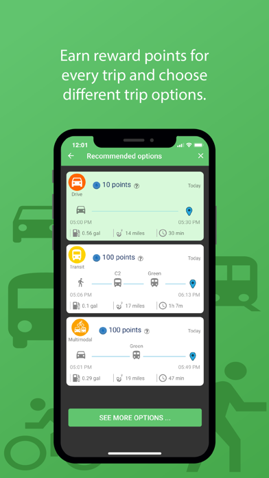 App users earn reward points while receiving recommendations on the best travel mode, departure time and/or route before and during a trip. User can exchange their reward points for gift cards or cash.