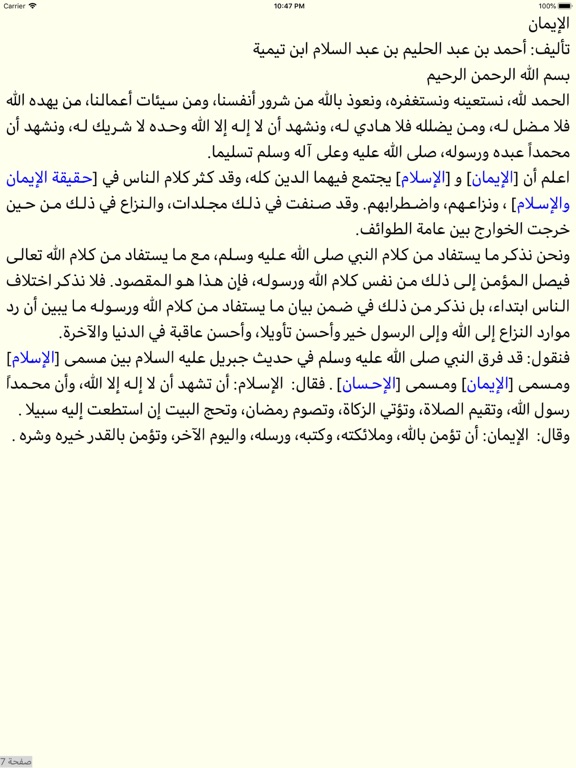 ٦- إمكانية تعديل ألوان الخطوط والخلفيات أو إعطاء ألوام وخطوط مخصصة للآيات والأحاديث مثلا والتحكم في كيفية ظهور النص في الصفحة