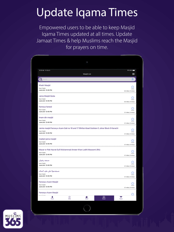 Muslims 365 is an initiative for believers across the globe to adapt the lifestyle that trades on punctuality, knowledge and care. It is based on Crowd Source Data Acquisition Strategy, and our revolutionary 365 Artificial Intelligence Engine enables users to: