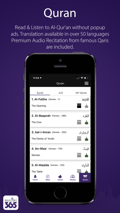 Muslims365 is free of ads so no disturbance while you’re actively using the app. You can