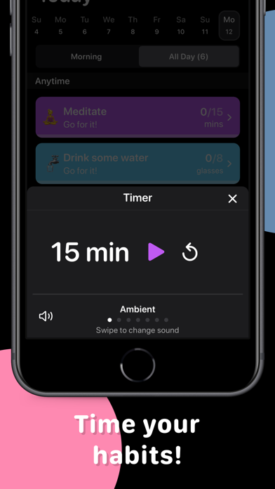 • Build your full daily routine with over 200 preset habits, or create your own using dozens of different colors & emojis, as well as time & location reminders, & timers!