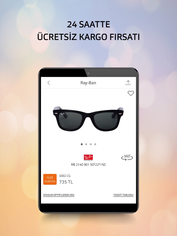 Size özel indirim ve fırsatları ile hızlı ve kolay alışveriş keyfini doyasıya yaşayacağınız Atasun Optik mobil uygulaması ile tanışmak için acele edin. Kendini özel hisseden kadın ve erkeklerin ilk tercihi Atasun Optik güneş gözlükleri ile siz de stilinize yeni bir anlam yüklemeye başlayın.