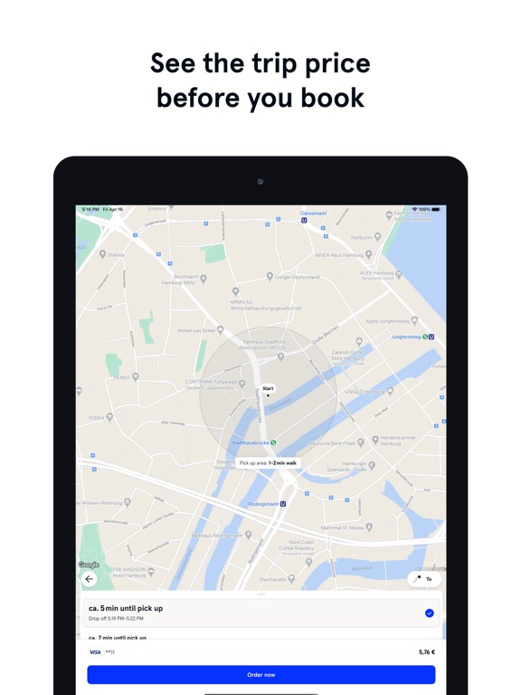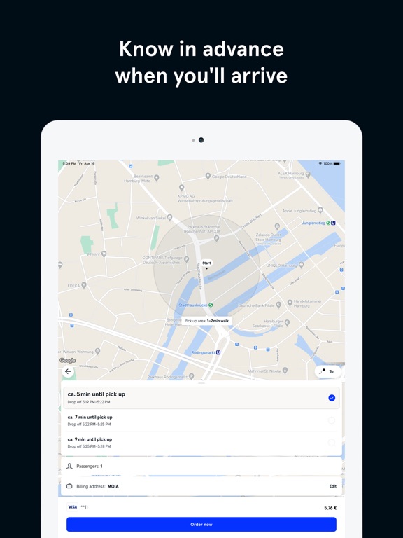 Easy: Up to six (currently: five) people heading in the same direction travel together. This is analternative to train, bus, metro, car sharing, taxi, and rental car, helping reduce congestion. So, lean back and enjoy the nice feeling of doing a little something for the environment with every ride through the city. Every trip you take helps make Hamburg and Hanover a bit more livable, whether on your way to work, the airport, the train station, the zoo, or Hamburg’s port. This is how transport is turned into mobility! And how the future of sharing becomes relevant for everyone.