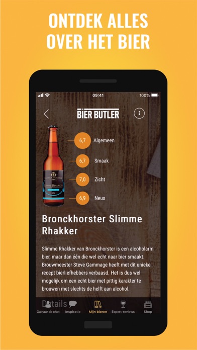 Je ontdekt de beste bier-food combinaties in de Bier Butler app. Eet je vanavond boerenkool? Dan geeft de Bier Butler je een bijpassend bier. Drink je een Tripel Karmeliet? Dan selecteert de Bier Butler voor jou bijpassende gerechten. Wil je jezelf ervan verzekeren dat je het meest smakelijke bier in huis haalt voor een feestje, diner of andere gezellige gelegenheid? Scroll dan door meer dan 6000 verschillende bieren om de expert-reviews te lezen. Ook houd je gemakkelijk een overzicht bij met alle bieren die je al gedronken hebt, of bieren die nog op je wish list staan. En het mooiste van allemaal? Je downloadt de app helemaal gratis!