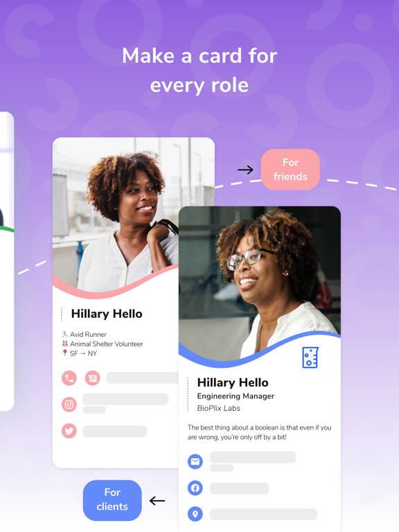 • You can share your digital business card with anyone, even if they don’t have the HiHello app.