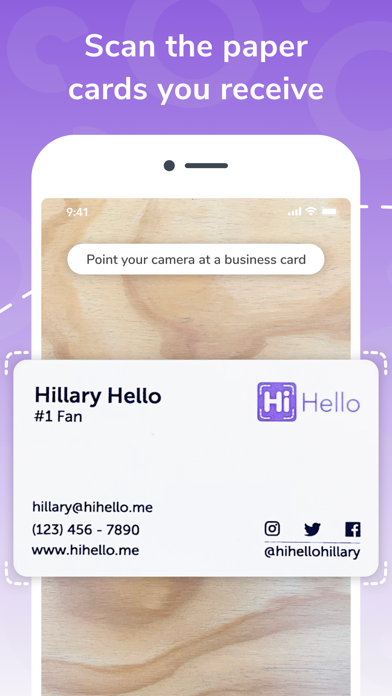 • We get it—some people still love paper business cards. HiHello has a human-verified business card scanner so you can scan any paper cards you receive.