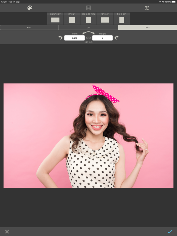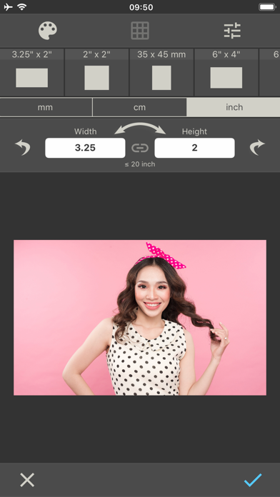 2. Define the desired print size in millimeters, centimeters or inches for each image