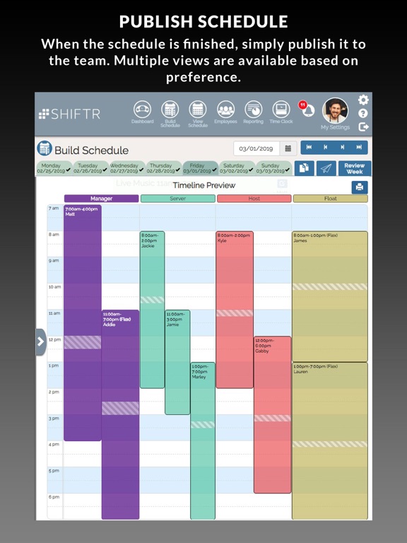 SHIFTR makes it easy to build and manage the employee schedule and track attendance. Start scheduling for free and create the team schedule in minutes!