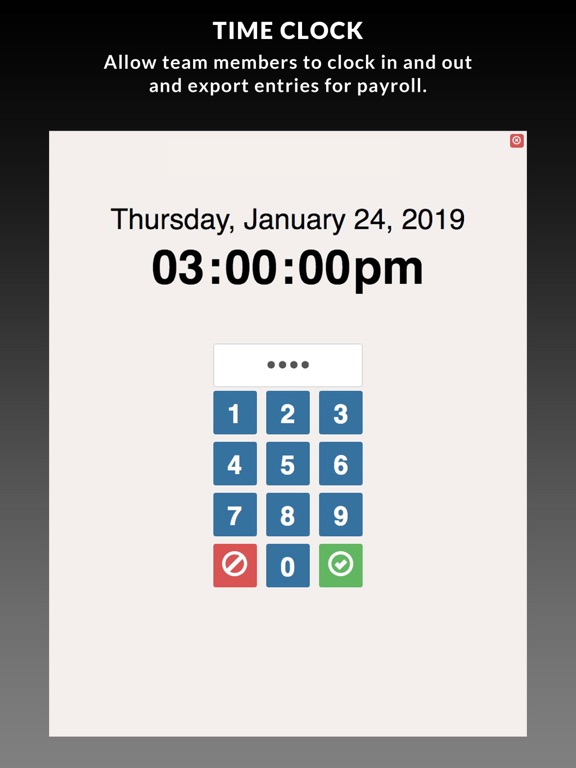 • Allow team members to clock in and out via a device you've designated as an on-site kiosk and/or use their own devices