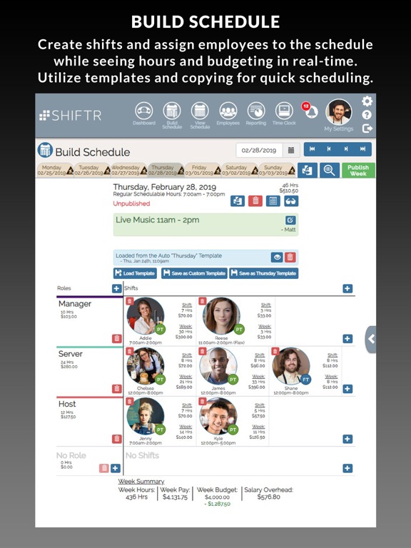 • Create auto-load templates for each day of the week—with or without employees included. Great for recurring schedules!