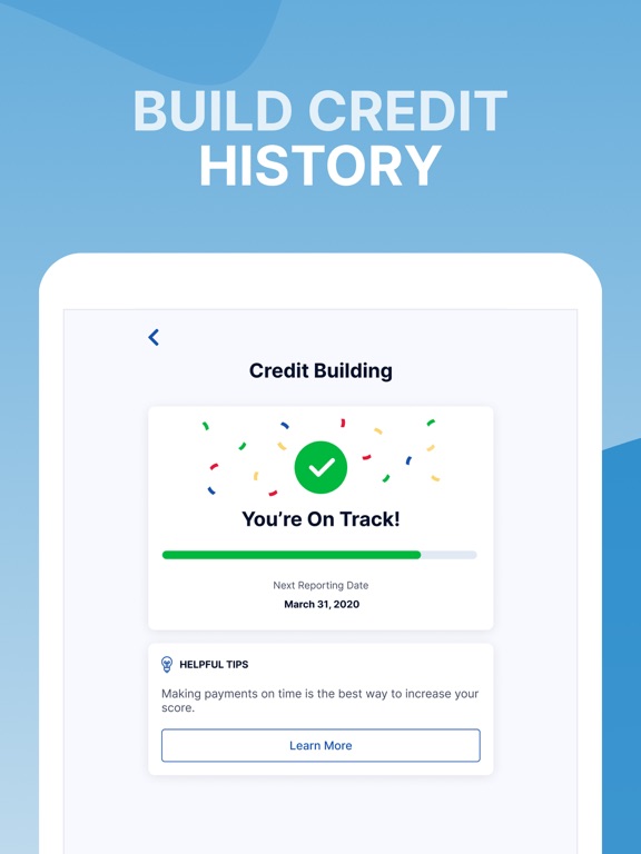 We report repayments to TransUnion and Experian, allowing you to build your credit history and graduate to better financial tools. Shouldn’t you be rewarded for reliably paying on time?