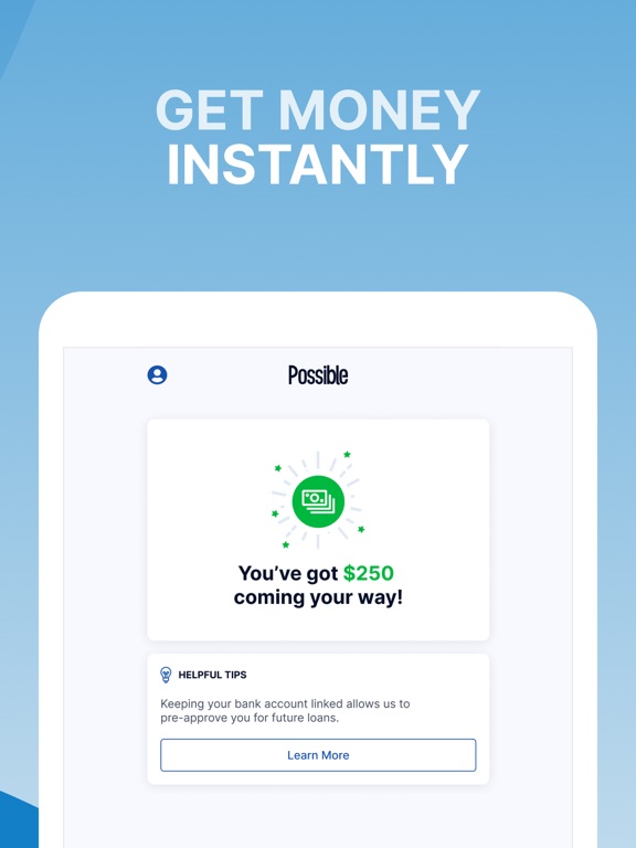 Access fast and affordable money, build credit history, and fight bank fees. Borrow up to $500* in minutes even with bad or no credit. Repay in installments to build your credit history and improve financial health. Reduce overdrafts and recoup your hard-earned money. Join over a million users who are avoiding predatory lenders and using Possible to make financial fairness a reality!