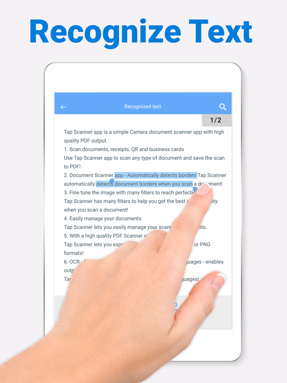 Use Tap Scanner app to scan any type of document and save the scan to PDF!