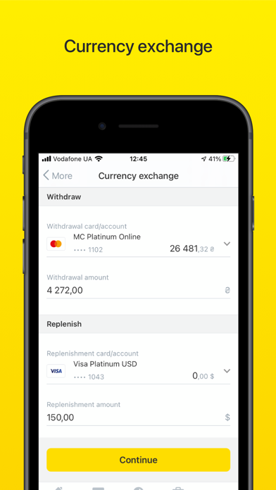 Open bank accounts and deposits, view cards balance and set card limits, exchange currency, repay loans,