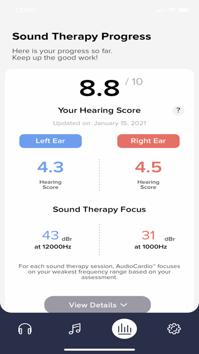 AudioCardio’s data and science backed solution allows you to check your hearing and generate a personalized sound therapy (inaudible) that aims to maintain and strengthen your ears.