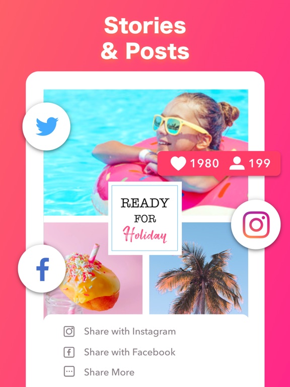 You can showcase your brand with thousands of professional designs in one tap, besides, there are amount of eye-popping templates for Instagram story, Facebook post, Banner, Logo for you to express your personalities. All your designs can be customized, you can change the colors and captions, photos, graphics and fonts every time.