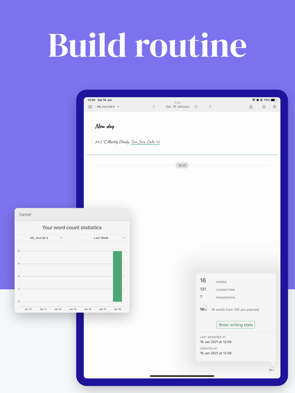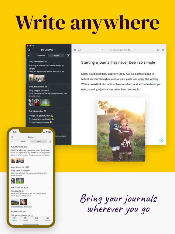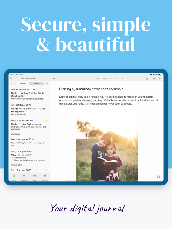 Diarly is a diary and note-taking app that makes the daily habit of journaling simple and secure. Bring exciting stories and memories together in your new digital journal.