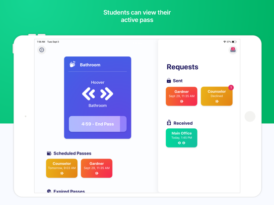 SmartPass Mobile allows you to easily create and manage hall passes in the SmartPass Digital Hall Pass System. Students can quickly create passes on their personal devices, and teachers/admins can monitor active hall passes in their building.